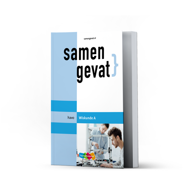 Samengevat havo Wiskunde A is geheel vernieuwd en sluit volledig aan op het actuele examenprogramma. Hiermee heb je het perfecte uittreksel van alle examenstof in één boek, compact, overzichtelijk en systematisch weergegeven. De theorie gaat hand in hand met formules en rekenmethoden. De linker- en rechterbladzijde vormen één geheel. Op de linkerpagina worden de wiskundige begrippen kort weergegeven, op de rechterpagina worden de begrippen nader toegelicht aan de hand van opgaven voorzien van voorbeelduitwerkingen.