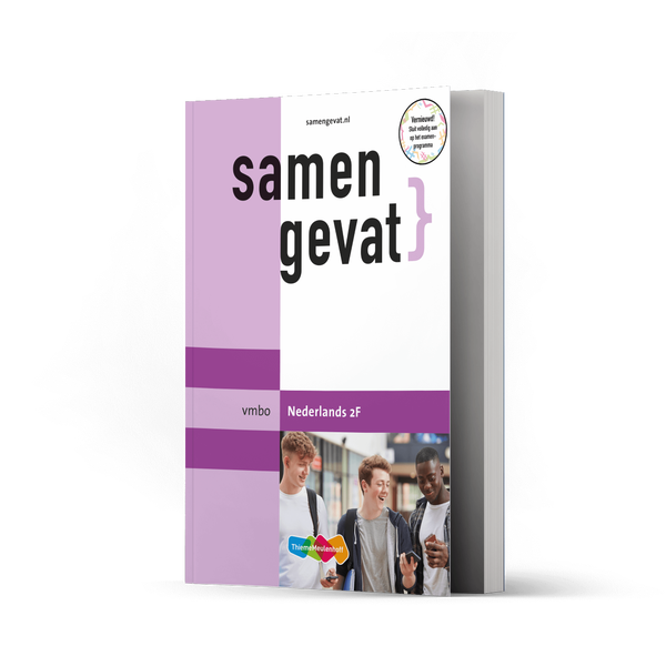 Met Samengevat vmbo Nederlands 2F weet je precies wat je moet kennen en bereid je je zelfstandig voor op het examen. Gecombineerd met Examenbundel vmbo-gt/mavo Nederlands vormt Samengevat al 45 jaar de beste voorbereiding op het examen. Je vindt de theorie in Samengevat en je oefent met de opgaven uit de Examenbundel. Het boek Zeker Slagen! helpt je daarnaast om efficiënt te leren en te plannen.