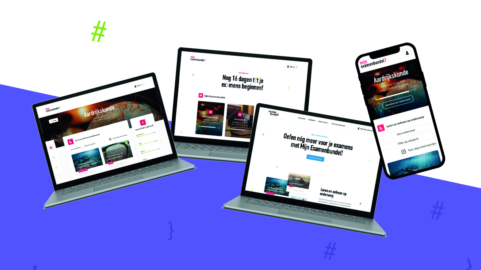We gaan je een geheim vertellen... Je bent al je hele schoolcarrière bezig met leren voor je eindexamens! In je eindexamenjaar wordt vaak veel stof herhaald bijvoorbeeld bij de schoolexamens. Allemaal zodat jij het tijdens je eindexamens gaat nailen! Merk je dat je graag alle examenstof wilt doornemen, wilt oefenen of meer wilt weten over leerstrategieën dan raden we je zeker aan om één van onze producten te overwegen. Daarnaast is Mijn Examenbundel toegankelijk voor iedereen dus neem ook daar zeker een kijkje.